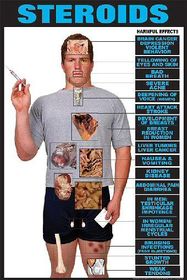 El abuso de los esteroides anabólicos ha sido asociado con una gran diversidad de efectos secundarios adversos que van desde algunos que son físicamente poco atractivos como el acné y el desarrollo de los senos en los hombres, hasta otros que ponen en peligro la vida, como ataques al corazón y cáncer del hígado.