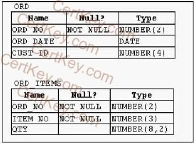 View the Exhibit and examine the structure of the ORDER_ITEMS and ORDERS tables. You are asked to