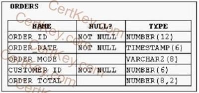 View the Exhibit and examine the descriptions for ORDERS and ORDER_ITEMS tables. Evaluate the