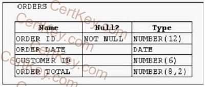 View the Exhibit and examine the structure of the ORDERS table. NEW_ORDERS is a new table with the