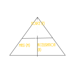 | What is the FIRST acceleration Formula? | Magic Triangle. F=mxa M=f/a A=f/m |