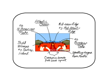 | Conservative Plate Margin Volcanoes/Volcanic Islands | Convection currents force plates apart, magma rises and cools in gaps forming new crust. |