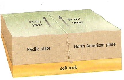 | Conservative Plate Margin Earthquakes | Plates move against each other causing friction, pressure released as an earthquake. |