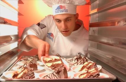 | He is cooking. | |