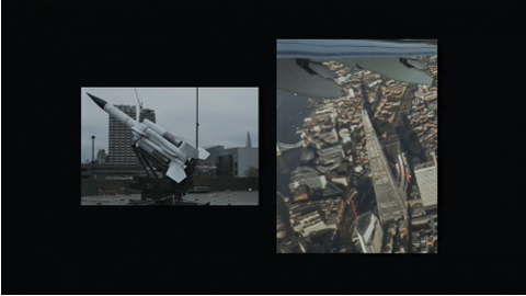 | Common themes on the river: power, & the Navy links : Installation by Richard Wentworth of anti-aircraft missiles on the roof of the Hayward Gallery, London, for the exhibition, History is Now. (2015) rechts : The Shard, Renzo Piano (built 2008–12) Luftpunkt für Flugzeuge, sehr teure Wohnungen | |