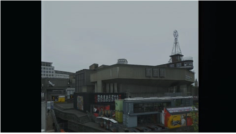 | -BigBen -Brutalist Art Center -Schiff auf dem Dach -? -Dan Graham Sunset Pavilion (neben gelb) -Hayward Gallery (hinten) -Handel und Kapitalismus überall | |