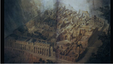 | Architektur des Imaginären durch Urbanisation kam es zu slums, durch Ruinen zurück zur Natur The Bank of England (various stages of work 1789–1829) | |