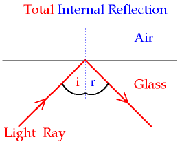 | What is total internal reflection (TIR)? | Total Internal Reflection is when a light ray is reflected back into the medium it went in. Thus, the ray is unable to be seen from the other side. |