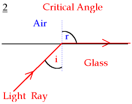 | What is the critical angle? | The critical angle is the angle of incidence produces an angle of refraction at 90 degrees. Different mediums have different critical angles. |