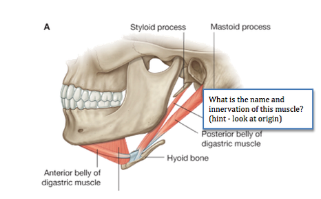 | Name the four suprahyoid muscles. | Stylohyoid, digastric (anterior and posterior bellies), mylohyoid, geniohyoid. |