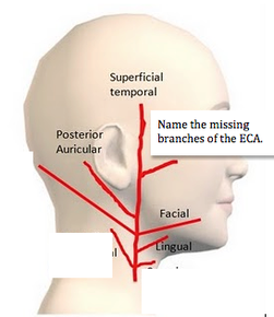 | From superior to inferior: Maxillary, occipital, ascending pharyngeal, superior thyroid | |