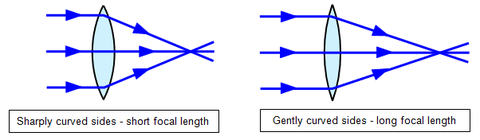| Describe the relationship between the power of a lens and its shape. | The more curved the surface of a lens (thicker center) the greater its power. |