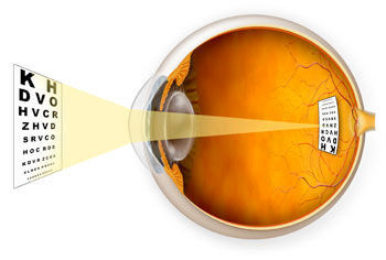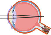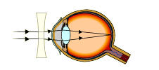 | Describe how short sight can be corrected. | It can be corrected by placing a concave lens in front of the eye. |