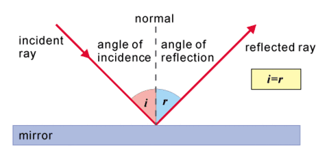 | Describe the law of reflection. | The angle of incidence = the angle of reflection. |