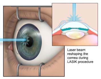 | Explain the use of laser eye surgery. | Laser eye surgery is used to treat myopia and hyperopia by changing the shape of the cornea using a laser. |