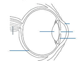 | State the main feature on the diagram of the eye. | The main features are the cornea, iris, pupil, lens, retina and ciliary muscle. |
