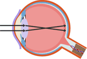 | Explain the symptoms and cause of short sight. | Someone with long-sightedness cannot focus properly on near objects. This is because the lens focuses the sharpest image behind the retina. This defect is often age-related, and due to the lens becoming more crystalline. |