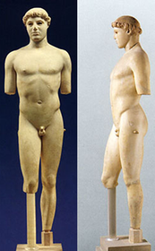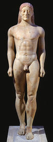 | Anavysos Kouros Cemetery near Athens 530 BCE, marble, 6’ 4” | |