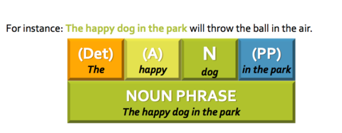 | Ordering of elements We tend to order elements in a way within phrases. Noun Phrase? | |