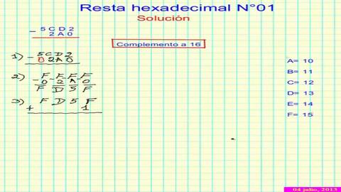 | paso 2: | Si el resultado es mayor o igual a 16 se le resta 16 y se pone un acarreo a lacolumna de la izquierda. |