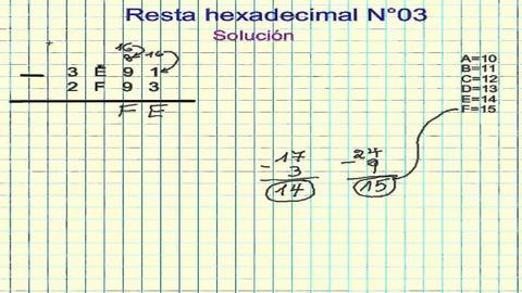 | paso 2: | un nuevo número con la cantidad de números que el nuevo sustraendo. Como en el sistema hexadecimal el mayor número que tenemos es el 15, que corresponde a la letra F, tendremos que escribir la F tantas veces como números tiene el sustraendo. |