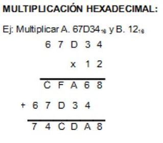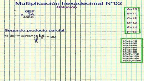 | multiplicacion de hexadecimales paso 1: | Realiza la multiplicación como si fuera una multiplicación normal en decimal. |