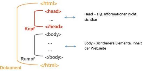 | Wie ist ein HTML Dokument aufgebaut? Benennen sie die einzelnen Teile und geben sie die Syntax an. In welchem Bereich stehen welche Daten? | |