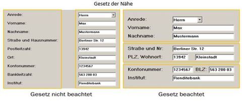 | Nennen und skizzieren Sie Beispiele wie das Gesetz der Gleichheit und der Nähe bei einem Formular helfen kann. | |