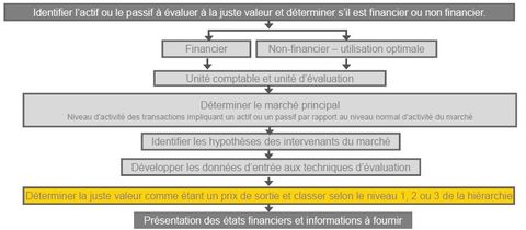 | IFRS 13 : Comment définie-t-on le marché principal? | - Volume et niveau d'activité le plus élevé pour l'actif/passif - l'entité a accès a ce marché |