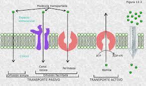 | TRANSPORTE A TRAVÉS DE LA MEMBRANA el transporte de sustancias depende de la estructura de la membrana y de las propiedades químicas de las sustancias. | Las moléculas pueden atravesar la membrana por tres tipos de transporte: difusión simple y facilitada y transporte activo. |