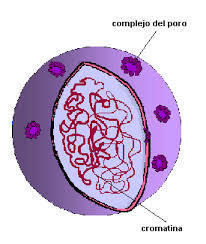 | El núcleo celular presenta cuatro componentes fundamentales: la carioteca, la cromatina, el nucleolo y el nucleoplasma. | Los cromosomas de todas las células eucariotas poseen la misma estructura: una larga molécula de ADN que forma los nucleosomas que a su vez forma el solenoide que forma el cromosoma. |