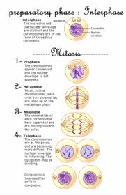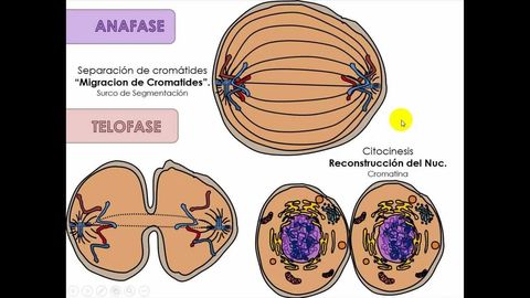 | El ciclo celular se divide en dos etapas: mitosis (profase, metafase, anafase y telofase) e interfase (G0, G1, S y G2). | La mitosis comprende la división celular del núcleo y la citocinesis que es la división del citoplasma. |