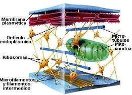 | El cito esqueleto es una compleja estructura intracelular constituida por micro tubos, micro filamentos constituidos por proteínas. | El cito esqueleto define la forma interna de la célula, Permite la adhesión a otras células y Permite el desplazamiento de materiales en el interior. |