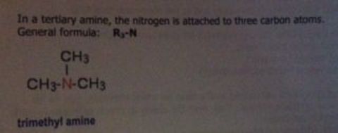 | Tertiary amine | The nitrogen is attached to three carbon atoms General formula: R3-N |
