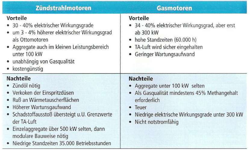 | Biogas in Gas(Otto)motoren ab wie viel kW? | ca. 300 kW el. |