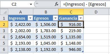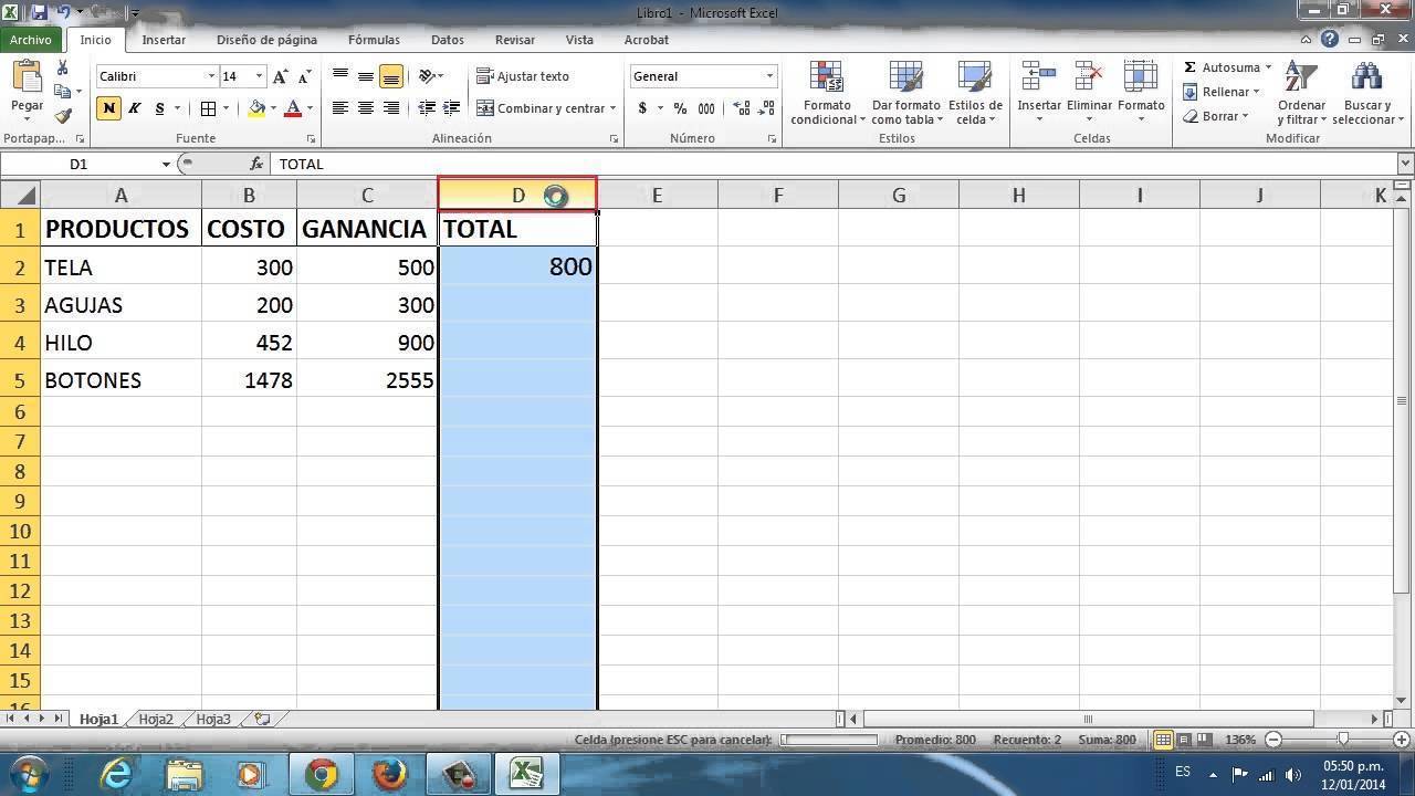 Uso de fórmulas en Excel.