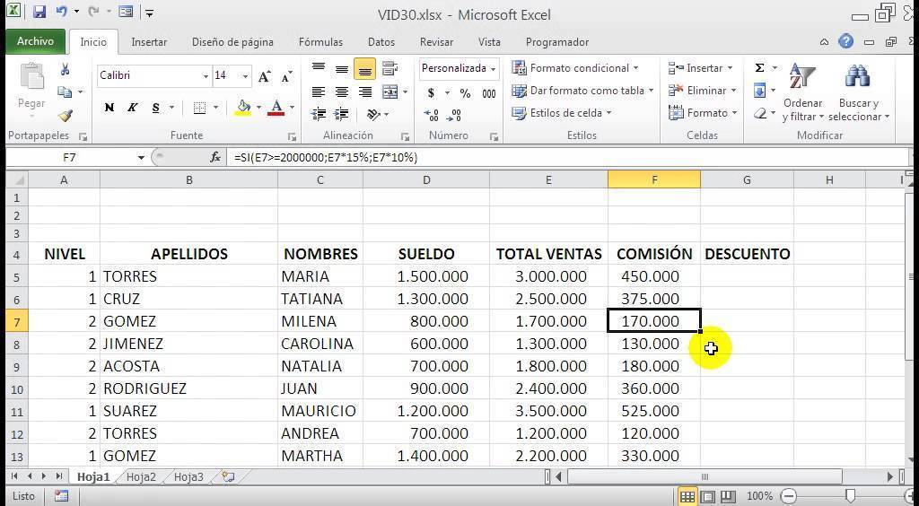 Evaluación de la Función SI en Excel