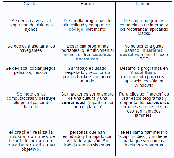 1. utilizan sus conocimientos para destruir y no obtener nada productivo, usan los conocimientos de otros para fines personales y solo se dedican a destruir y ocasionar perdidas