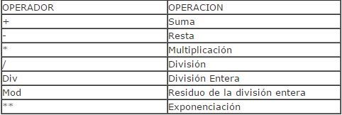 Operadores Aritméticos permiten la realización de operaciones matemáticas