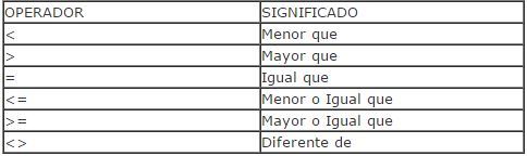 Operadores relacionales Establecen una relación entre los valores