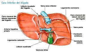 Top right portion of the abdominal cavity, beneath the diaphragm and above the stomach , right kidney, and intestines.