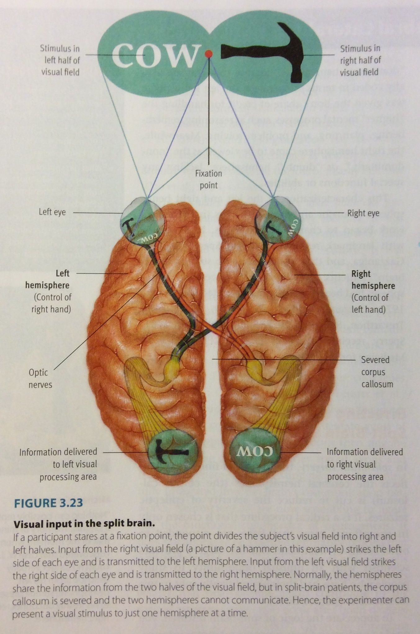 Information received by one hemisphere