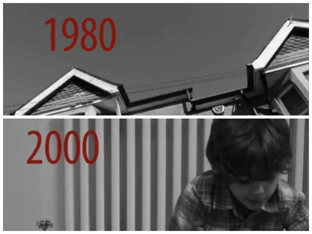 opening title sequence begins in '1980' and ends in '2000' showing a sense of looking back into the