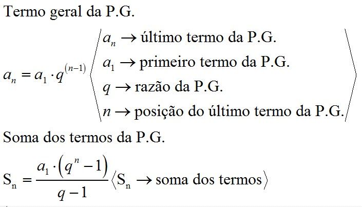 1. é toda sequência numérica em que cada termo, a partir do segundo, é igual ao produto do termo anterior por uma constante q. O número q é chamado de razão da progressão geométrica.