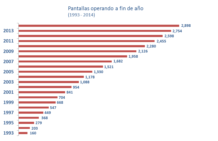 Cuenta con 4418 pantallas (2015)