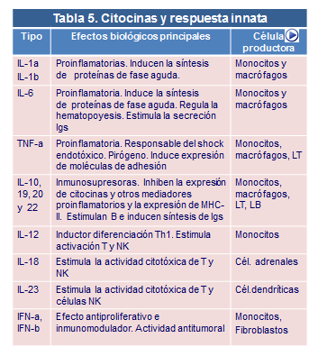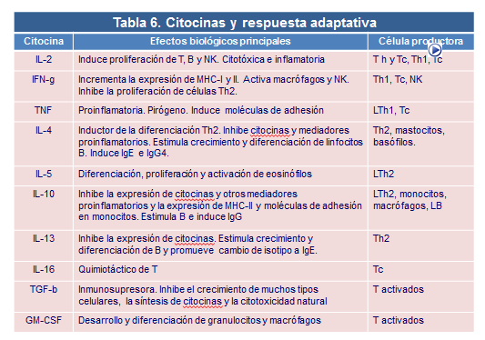 Principales tipos de respuesta de las Citocinas