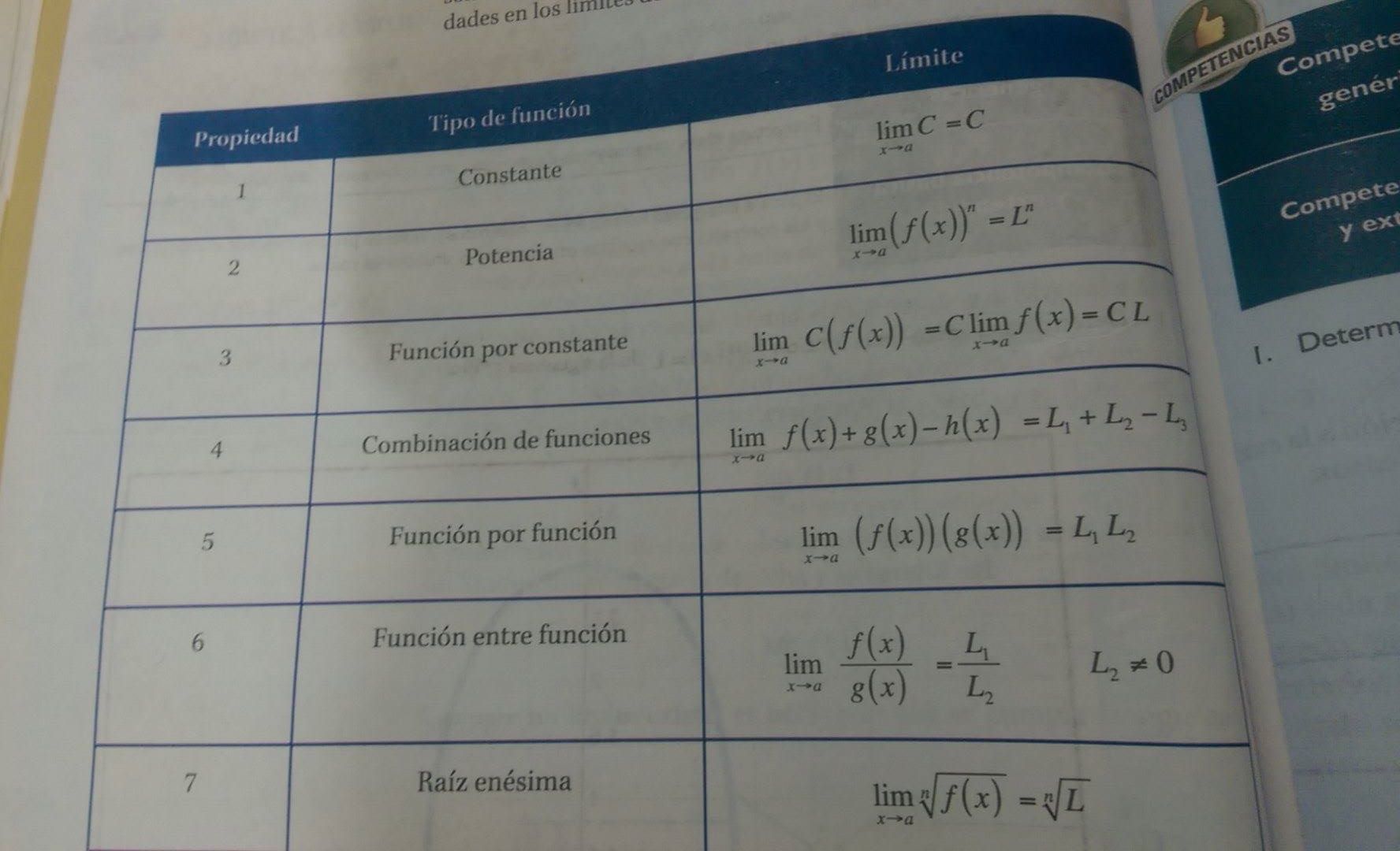 propriedades en los limites de las funciones