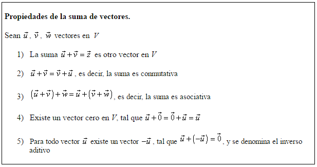 adición: u + v = v + u u + (v + w) =(u + v) + w