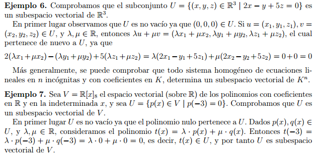 específicas como las siguientes Sea H un subconjunto no vacío de un espacio vectorial