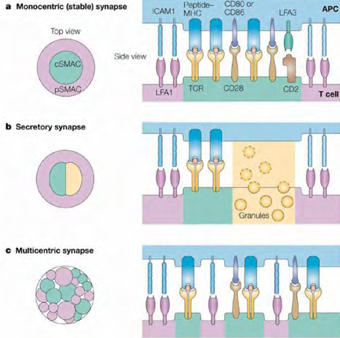 Sinapsis: reconocimiento del epítopo , maduración la sinápsis, desgranulación